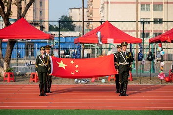 院旗在国旗护卫队的护送下庄严前行,全体师生高唱国歌,向国旗行注目礼,开幕式在肃穆而激昂的氛围中拉开序幕。