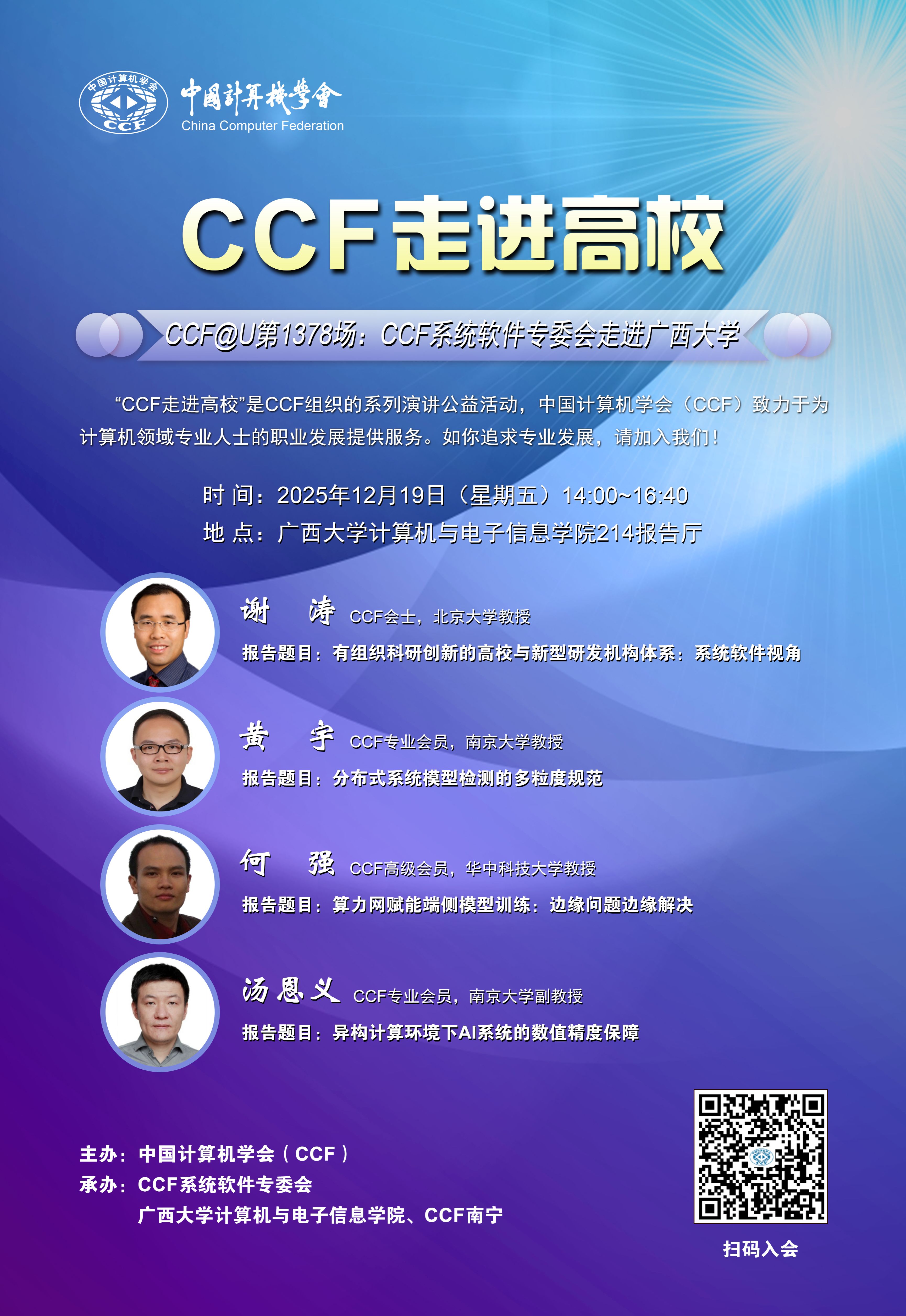 "计电讲坛"系列活动第49期学术报告会通知-CCF走进广西大学