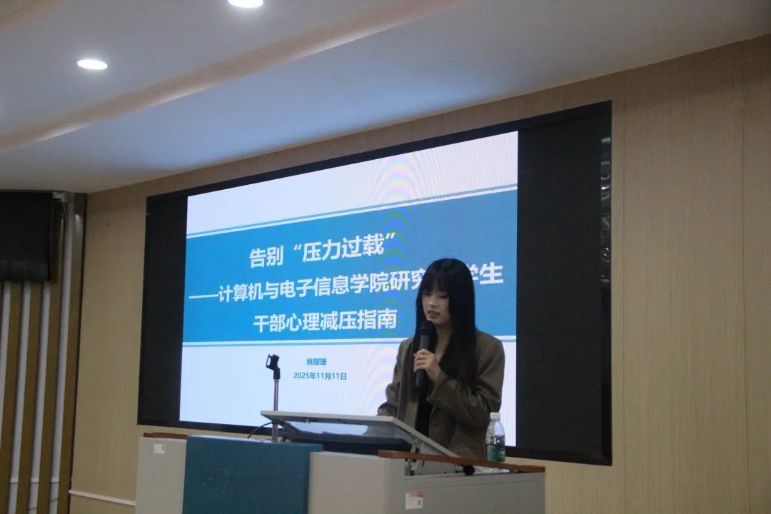 姚老师以“传递沙包”的暖场小游戏开启本次培训,迅速活跃了现场气氛,增进了师生间的互动与了解。在接下来的专题讲座中,姚老师结合学生干部的工作与学习实际,通过案例分析、互动问答等形式,深入浅出地讲解了压力的来源与识别方法,阐述了适度压力与过度压力对身心状态的不同影响。