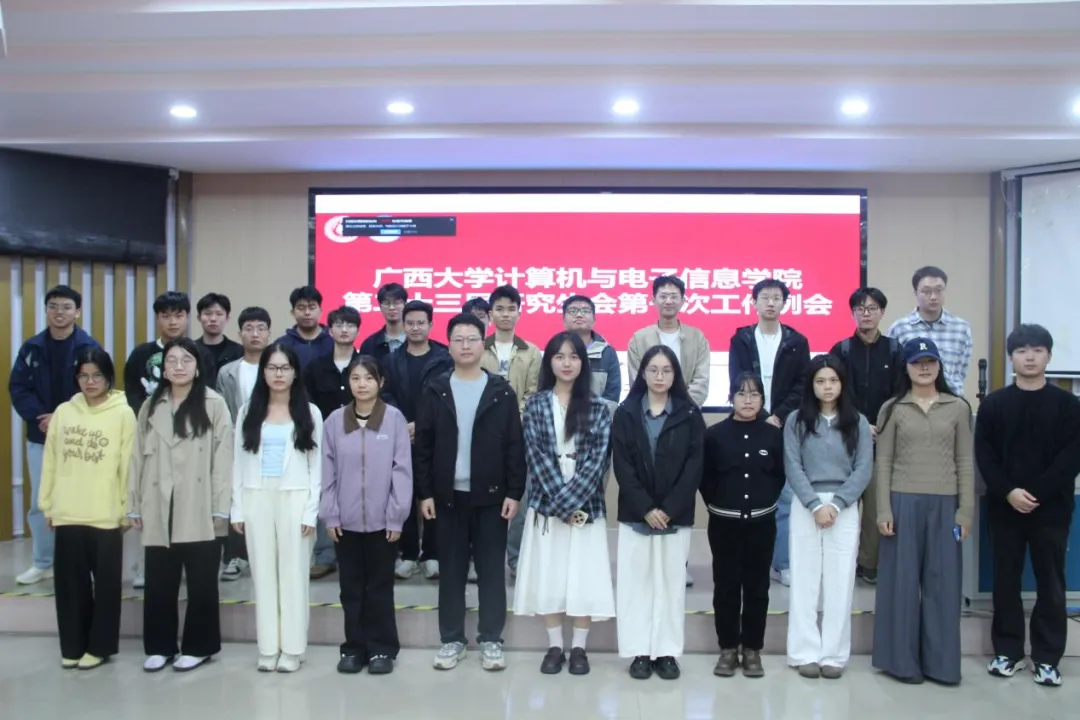 辅导员林文潮老师及研究生会全体成员出席此次会议,会议由研究生会主席团成员覃小洁主持。